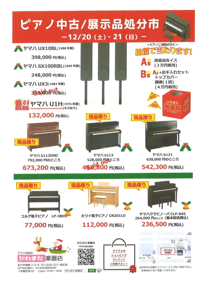 ピアノ中古/展示品処分市/12/20(土)21(日)